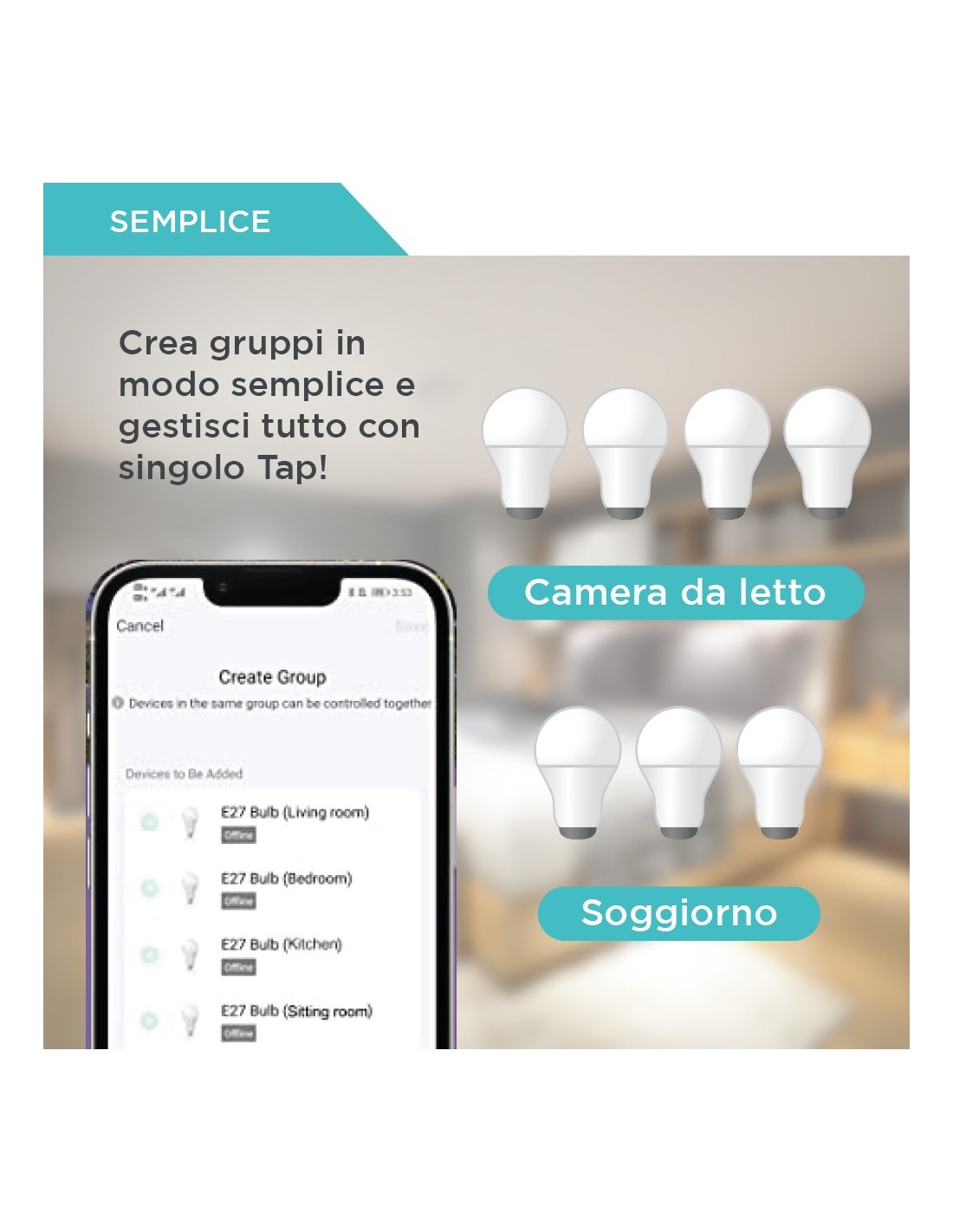 Controllo di gruppoPuoi creare un gruppo per controllare più lampadine contemporaneamente.