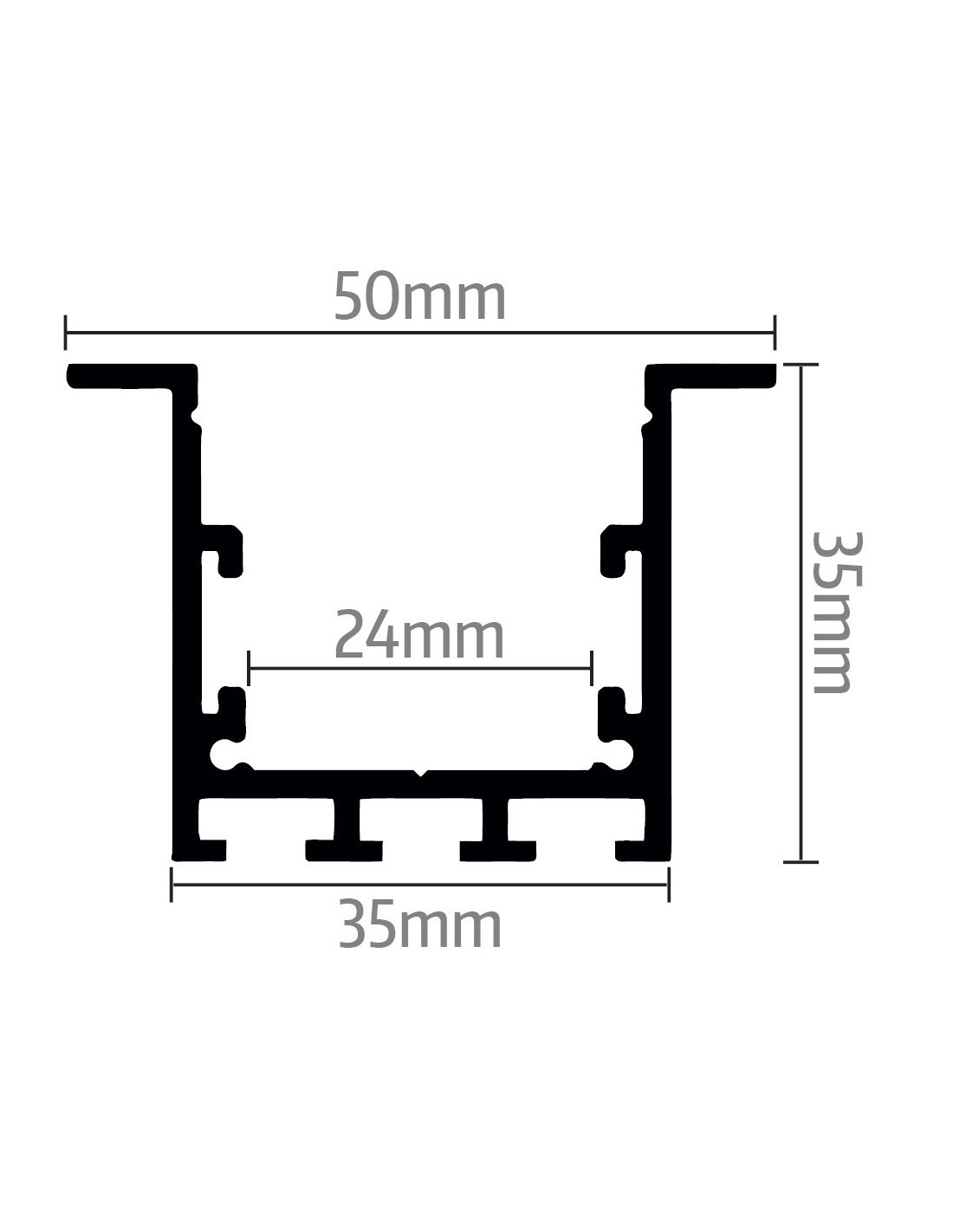 Grazie alla larghezza interna di 24 mm, sarà possibile installare una o due strip led (con pcb max 12 mm) così da ottenere la giusta luminosità in ogni esigenza.